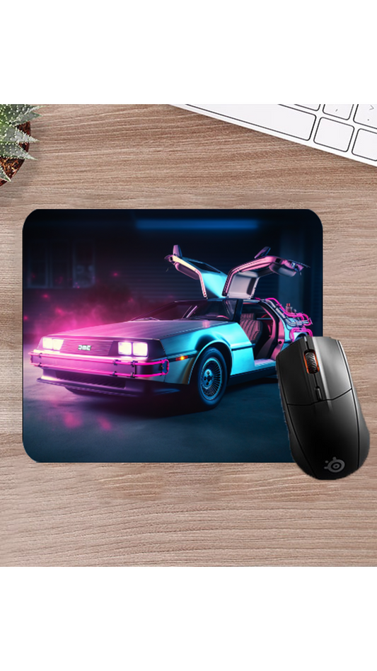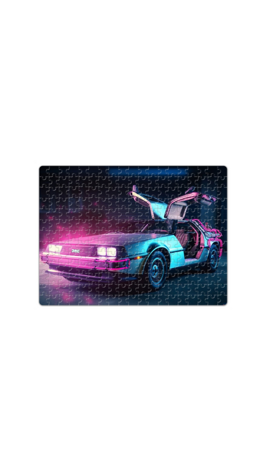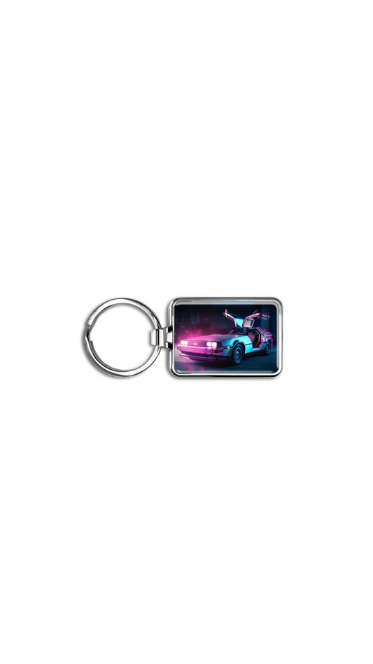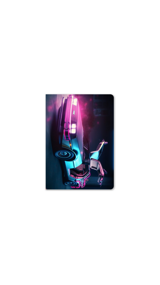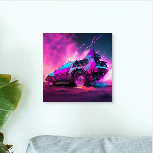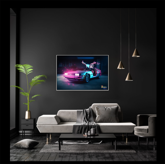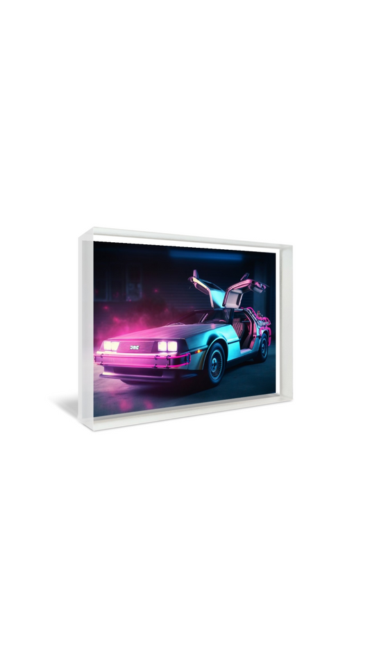 Neon DeLorean 24" x 36" limited Edition Acrylic Print in Stainless Steel Floating Frame